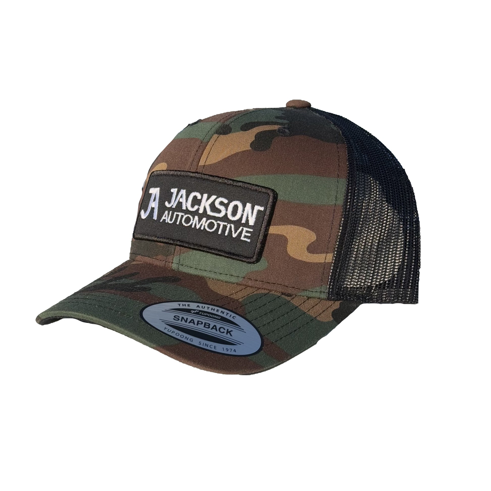 The JA Snapback Trucker Hat features mesh fabric panels for ultimate breathability, a snapback closure to give a sure fit, and a custom Jackson Automotive embroidered patch that makes you stand out from the others.
